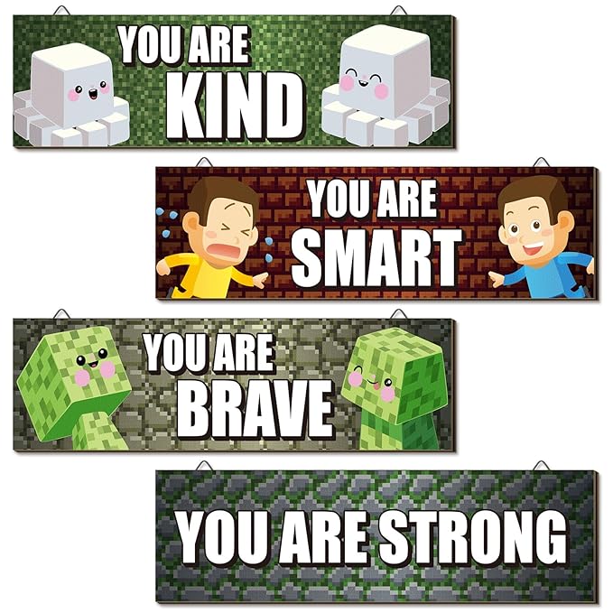 4 Pcs Game Bedroom Wall Decor Boys Room Decor for Kids Inspirational Wooden Hanging Wall Sign Motivational Quote Car Wall Decor for Boys Kids Nursery Playroom Kindergarten