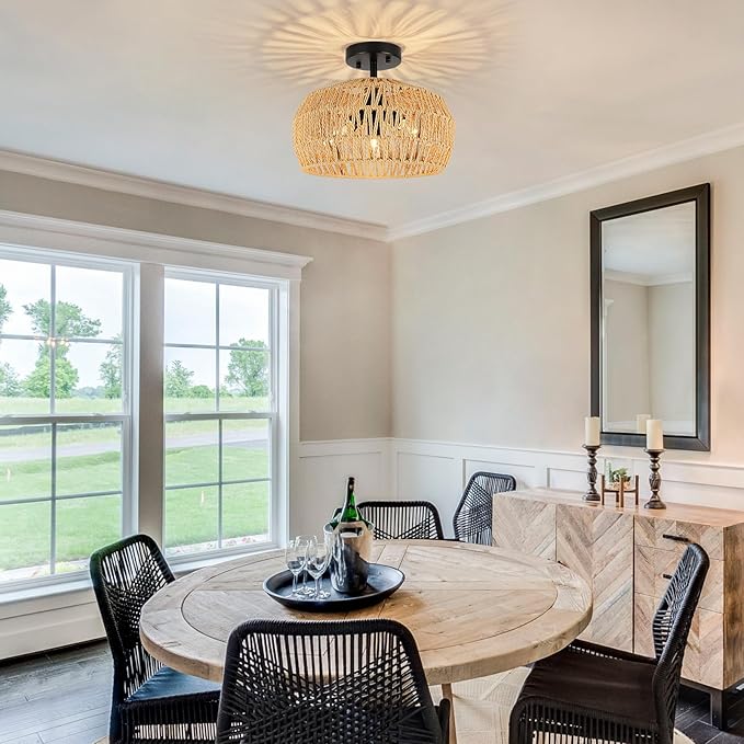 - 360° Light Effect: The coastal rattan ceiling lamp casts 360° light effect shadow through the holes and provides a cozy soft glow when turn on. Elegant and beautiful accent lighting for living room, bedroom, kids room, kitchen, farmhouse, nursery