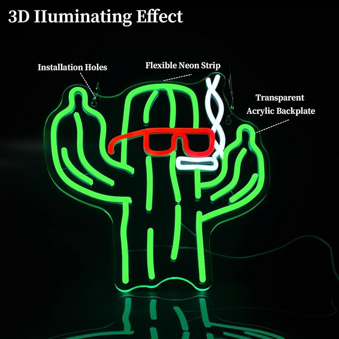 Cactus Neon Sign Led Neon Lights Neon Signs for Wall Decor Light Up Sign for Birthday Party Club Gift