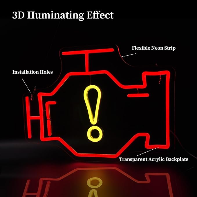 Check Engine Neon Sign Led Neon Lights Neon Signs for Wall Decor Light Up Sign for Birthday Party Club Gift