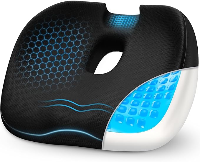 - Large Gel Layer, Optimal Cooling Comfort. This cooling gel pillow is crafted with an extra 50% area in gel coverage than the majority of gel pillows on the market. The seat cushion can offer you a long-lasting cooling effect to relieve skin and muscle tissues that are often inflamed as a result of hemorrhoids.