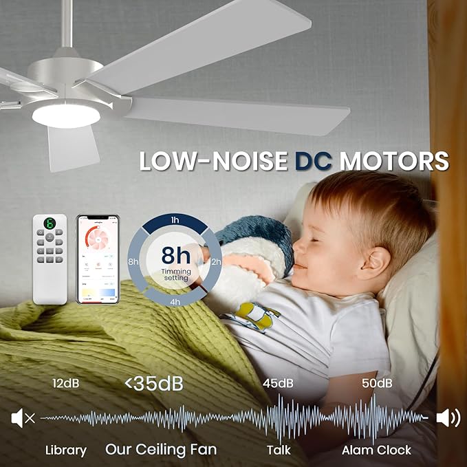 GESUM 52 Inch Smart Ceiling Fan with Light, Nickel Ceiling Fan with 5 Reversible Blades, Dimmable, 6 speed, 3CCT, Outdoor Ceiling Fan with Remote/App Control for Patio Kitchen Bedroom (Nickel)