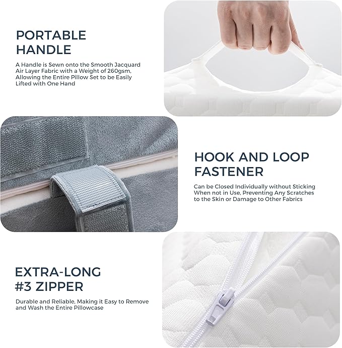 - High-Quality, Safe Materials: The pillow features 25D high-resilience sponge and a 1.5-inch layer of 40D gel slow-rebound memory foam for excellent support and a soft touch that alleviates pressure. It stays cool and dry even in summer, promoting refreshing sleep. Both the sponge and fabric are safe and non-toxic, meeting Oeko-Tex Standard 100 and CertiPUR US safety certifications.