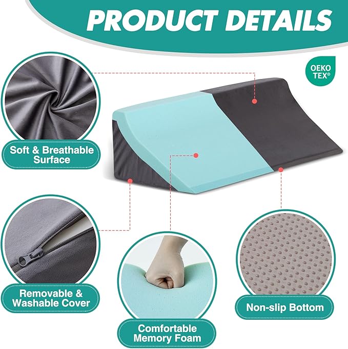 - 【Premium Memory Foam】 Crafted with a high-density foam core, the bed wedge pillow offers the perfect balance of firmness and support. It ensures comfort while providing the necessary support for side sleepers.