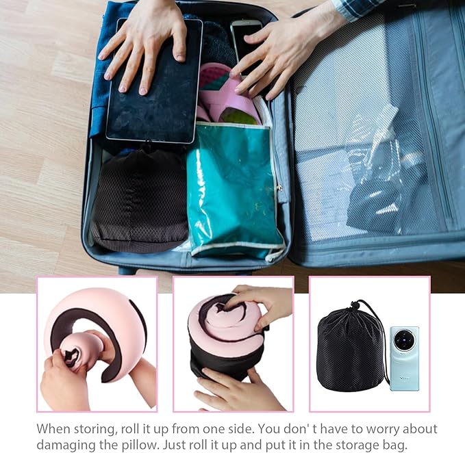 - 【Easy to Carry】Our travel neck pillow can be easily rolled up and put into your bag for easy portability. The neck pillow has a layer of anti-stick fabric that can be glued back to the Velcro when you are not using it to prevent other things from sticking to the Velcro. Whether you are commuting or camping, it brings you the best convenience.