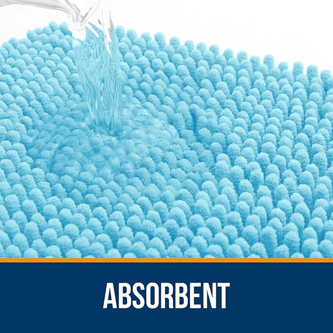 OLANLY Bathroom Rugs 47x24, Extra Soft Absorbent Chenille Bath Rugs, Rubber Backing Quick Dry, Machine Washable Bath Mats for Bathroom Floor, Tub and Shower, Home Decor Accessories, Sky Blue