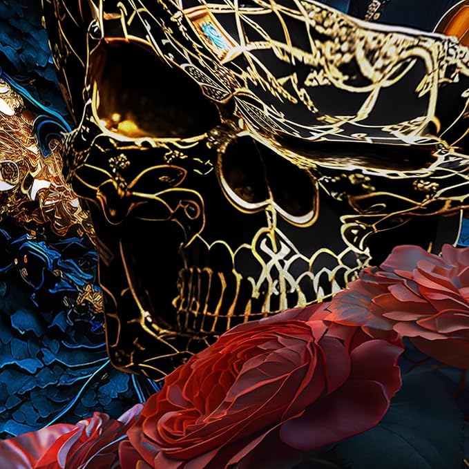 AILONEN 3D Skull Shower Curtain,Oil Ren Rose with Gold Skull Skeleton Design Shower Curtain Set with Hooks for Boys Girls Teens,Gothic Skull Waterproof Fabric Shower Curtain for Bathroom,60" W*72" H