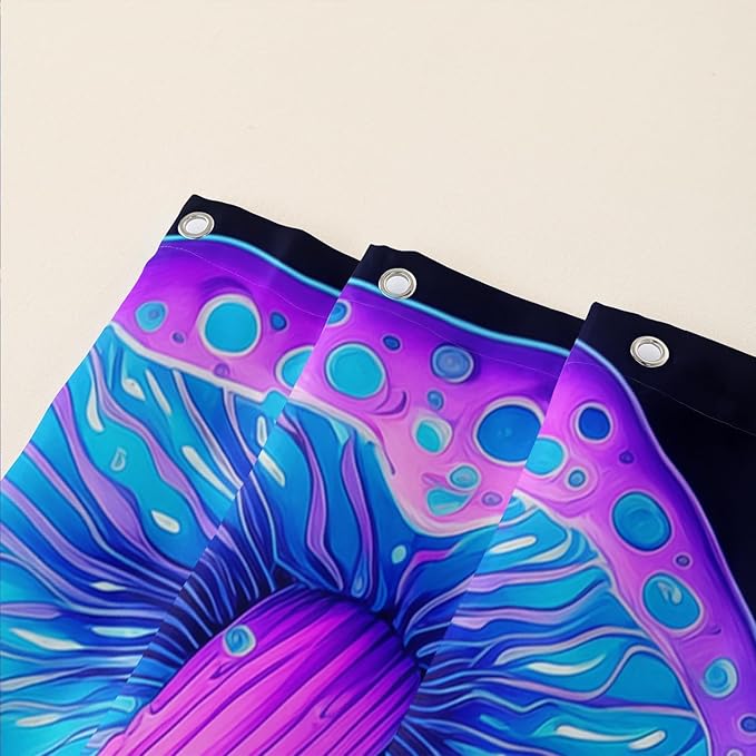 AILONEN Mushroom Shower Curtain for Bathroom, 3D Oil Painting Mushroom Bath Curtain,Blue Purple Fairy Fantasy Fungus Botanical Decoration Waterproof Curtain with 12 Plastic Hooks, 48" W*72" H