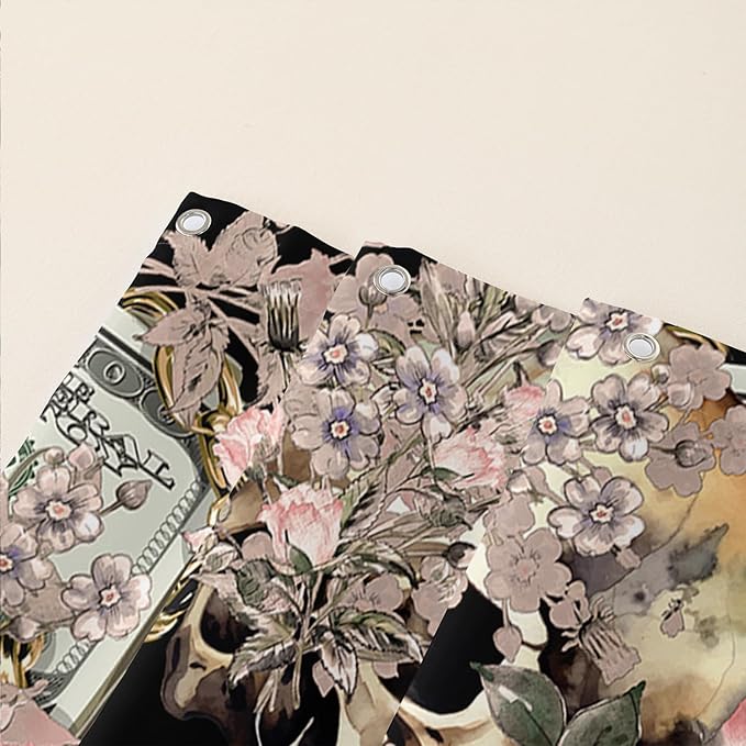 AILONEN Sugar Skull Shower Curtain for Bathroom,Romantic Rose Flower Bath Curtain for Girls Women,Money Skull Skeleton Print Waterproof Curtain with 12 Plastic Hooks, 72" W*84" H