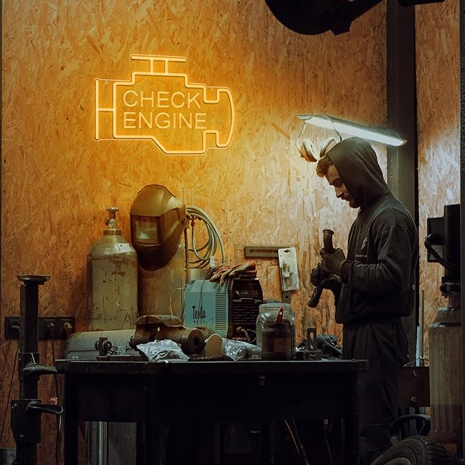 - 【IGNITE YOUR AUTOMOTIVE PASSION】Infuse your love for automotive style with this Check Engine light sign! Mimicking the iconic check engine light, it not only adds a dynamic flair to your garages, auto shop, car-themed rooms, but also serves as a great conversation starter among car guys.
