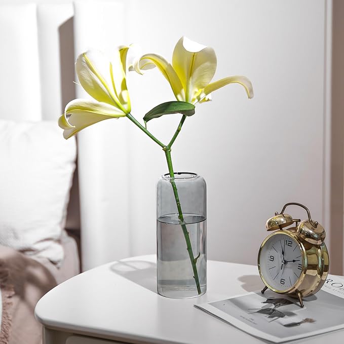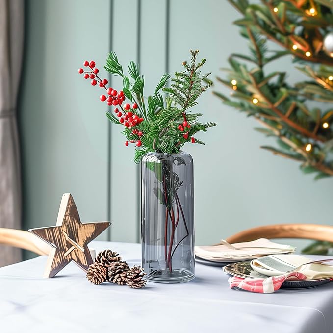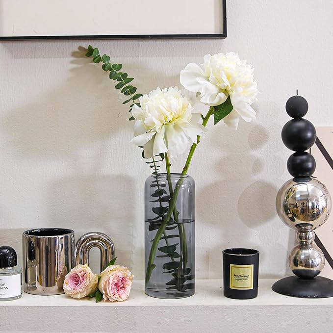 ComSaf Glass Flower Vase, 8 Inch Tall Bud Vases, Home Decor Vases for Centerpiece for Living Room and Bedroom, Decorative Vases for Wedding, Valentines' Day, Mother's Day (Grey)
