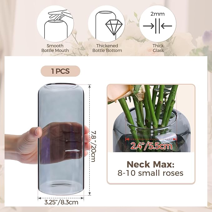 - [Quality] - Made from thick glass, this vase is durable and a great centerpiece for your dining table. For safety and convenience, we have meticulously crafted the top of the vase to be smooth without sharp edges, ensuring user safety while arranging flowers.