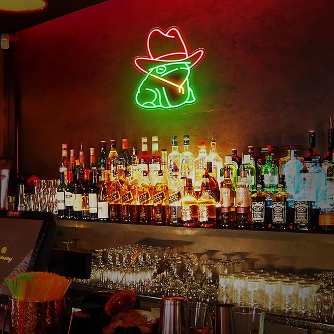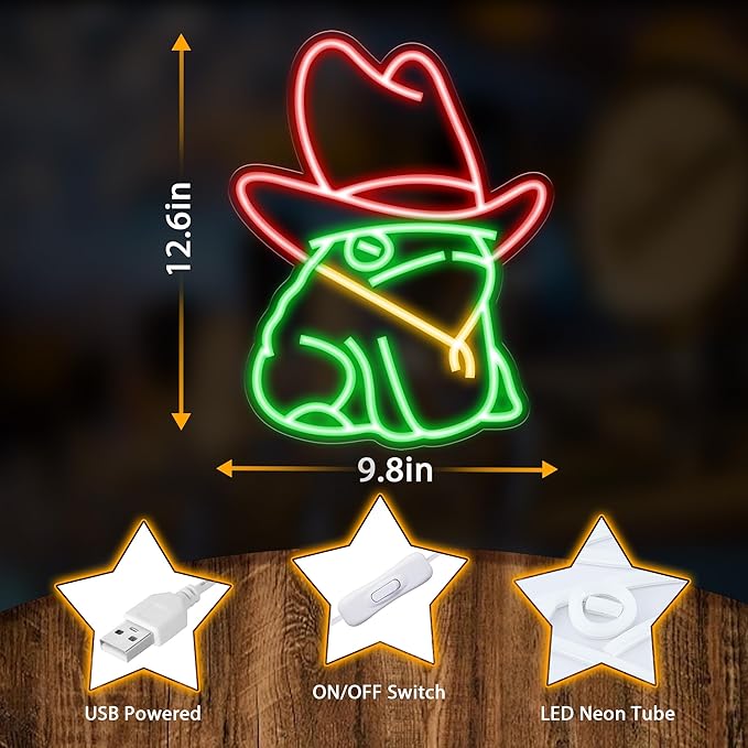 - 【VERSATILE & GIFTABLE】Whether you're decking out a man cave, bar, or adding flair to your game room, this frog neon light adds a playful twist to any space. It also makes an ideal gift for Birthday, Christmas and other occasions - GREAT for any who appreciates the wild west motifs.