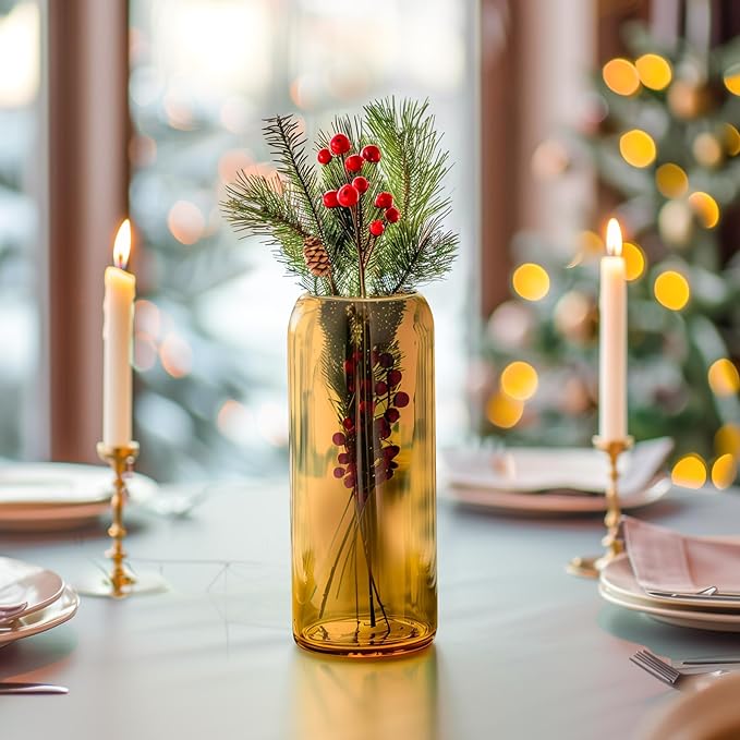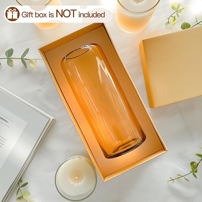 ComSaf Glass Flower Vase, 8 Inch Tall Bud Vases, Home Decor Vases for Centerpiece for Living Room and Bedroom, Decorative Vases for Wedding, Valentines' Day, Mother's Day (Amber)