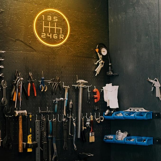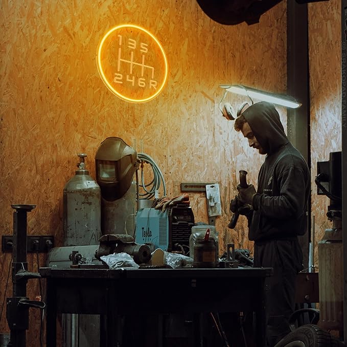 - 【IGNITE YOUR AUTOMOTIVE PASSION】Infuse your love for automotive style with this garage neon signs for men! Mimicking the iconic gearshift lever pattern, it not only adds a vibrant flair to your garages, auto shop or car-themed rooms, but also serves as a great conversation starter among car guys.
