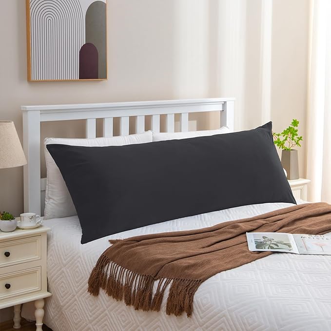 Black Body Pillow for Adults Shredded Memory Foam Long Pillow for Sleeping Firm Hug Pillows Removable Cover for Side and Back Sleepers Full Pillow with Black Pillowcase
