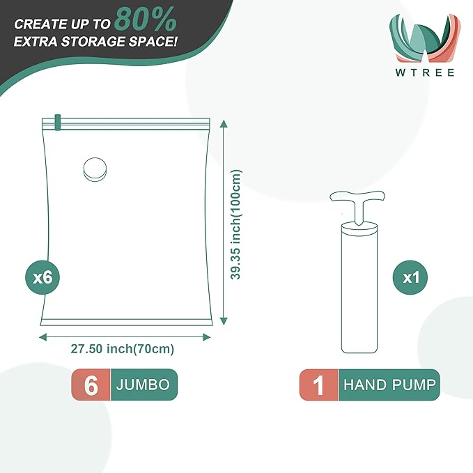 - 💎Ultimate Storage Solution: Take control of clutter with our premium vacuum storage bags. This value pack includes 6 Jumbo size bags.