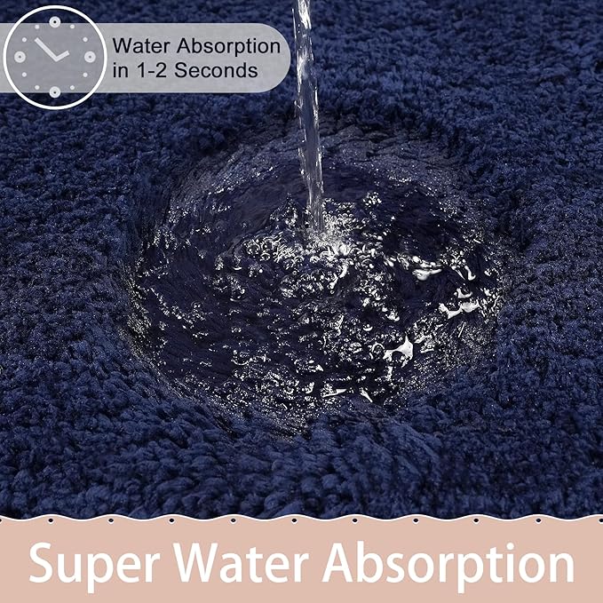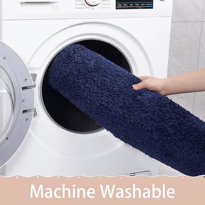 AROGAN Luxury Long Bathroom Runner Rug, 24x60 Inch Thick Soft and Absorbent Microfiber Non Slip Bath Mat, Rubber Backing Quick Dry Rugs Carpets, Machine Washable Plush Mats for Shower Floor, Navy Blue