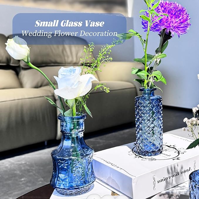 - 🌱【MIX AND MATCH】Each unique mini country style vase comes in a different design, size and shape. These small glass vases are best suited for single stems or reed scented sticks. They can also be left empty and enjoyed alone. Mix and match different styles of vases to create your own vase decor display.