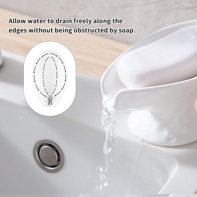 - Self-Draining Soap Dish:Our soap dish for bathroom sink features an innovative self-draining system with a 45° oblique design for efficient water removal and quick drying. Save soap, reduce waste, and enjoy long-lasting freshness.
