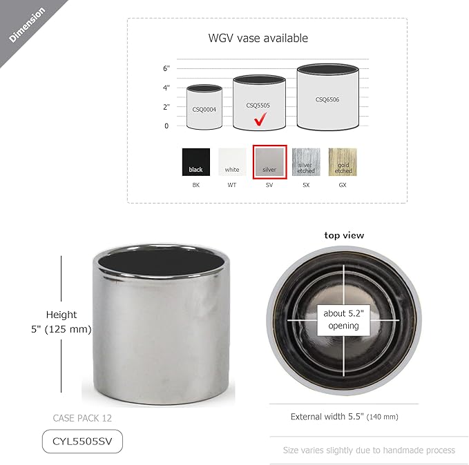 - Include: 6 Pieces Silver Ceramic Cylinder carefully packaged, Vase Fillers and Flowers are Not Included.