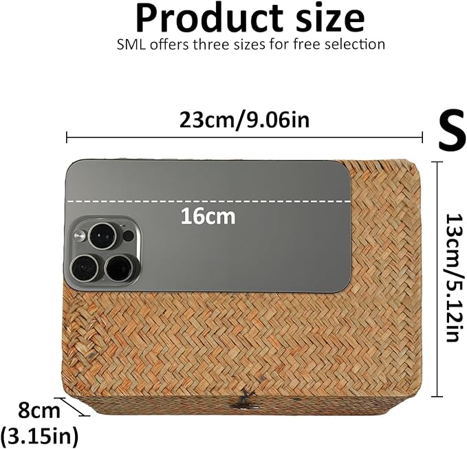 - 【Rattan Basket Dimension】Each basket is unique in size and color due to natural materials, measuring approximately 9.06x5.12x3.15 inches. The handmade nature of the baskets adds a touch of artisan charm to your home decor, bringing warmth and character