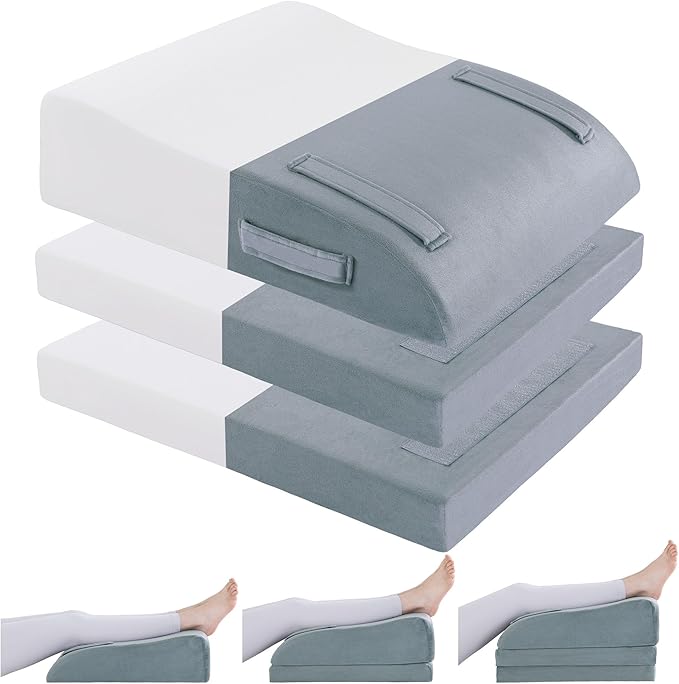 BALAPET Adjustable Leg Elevation Pillows, 10" Height Memory Foam Wedge Leg Rest Pillow for Circulation, Supportive Bolster Pillow for Pregnancy Relieves Pressure Hip Leg Elevation, Light Grey