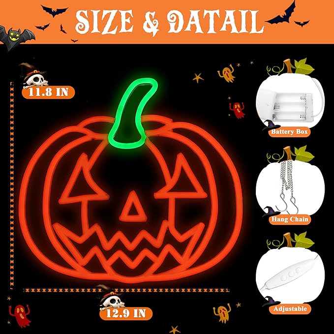 - Halloween Decor and Gifting Joy - Looking for the perfect Halloween decoration or gift? Look no further! This pumpkin neon light is a delightful addition to any Halloween setup and makes a fantastic gift for friends and family. Its festive glow brings the Halloween spirit to life, making it a must-have for any spooky celebration. Share the joy of Halloween with this charming and fun light!