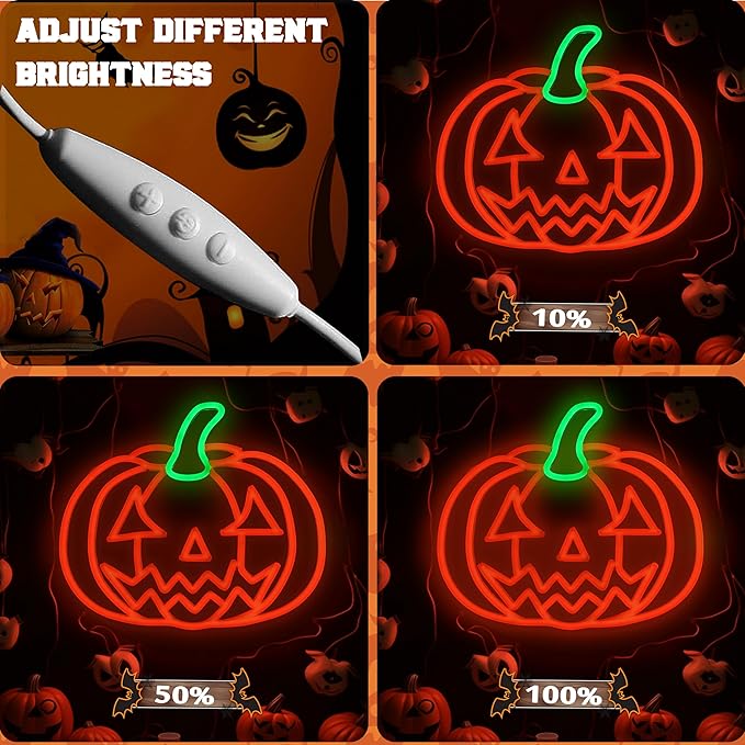 - Pumpkin Perfect Brightness - This pumpkin neon light isn't just cute—it's customizable! With five adjustable brightness levels, you can create the perfect spooky ambiance. Set it to a gentle glow for a cozy night in or crank up the brightness for a Halloween party that’s sure to be a hit. This light adapts to all your pumpkin-loving needs!