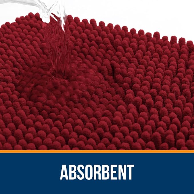 OLANLY Bathroom Rugs 59x20, Extra Soft Absorbent Chenille Bath Rugs, Rubber Backing Quick Dry, Machine Washable Bath Mats for Bathroom Floor, Tub and Shower, Home Decor Accessories, Red