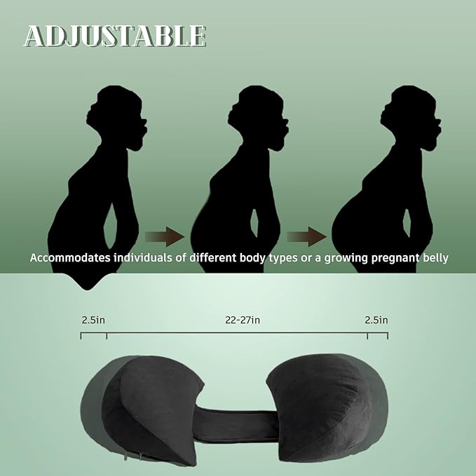 - Relieve pain and improve sleep: Use the maternity pillow to get better sleep. The pillow is 22-27 inches long, 15 inches wide, and 6 inches high. The distance of the two pillows can be adjusted at will to fit the size of your belly. It helps relieve discomfort caused by pregnancy, back pain.