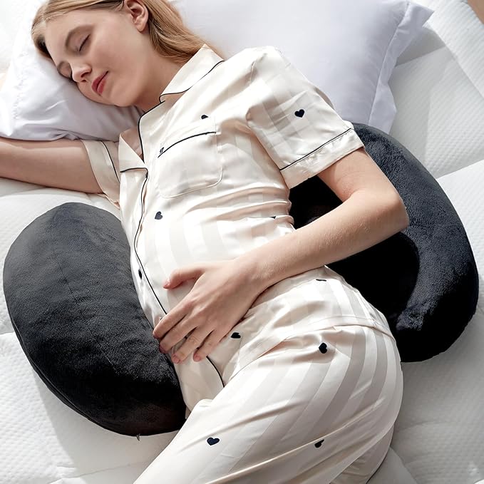 DOWNCOOL Pregnancy Pillow, Black Maternity Pillow for Pregnant Women, Pregnancy Pillows for Sleeping with Removable Cover,Support for Back, Belly, Legs