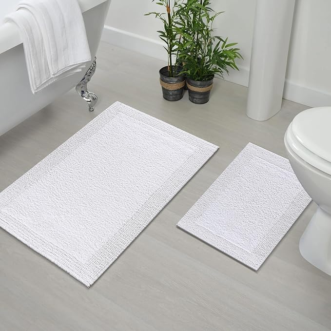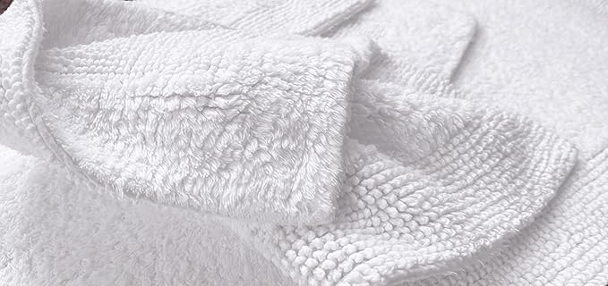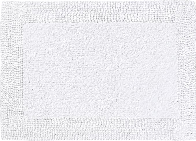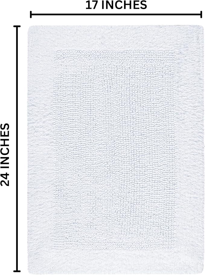 Bedding Craft Reversible White Cotton Bath Mat Rug – 17x24, Water Absorbent, Machine Washable Bathroom Rug Mat for Outside Bathtub