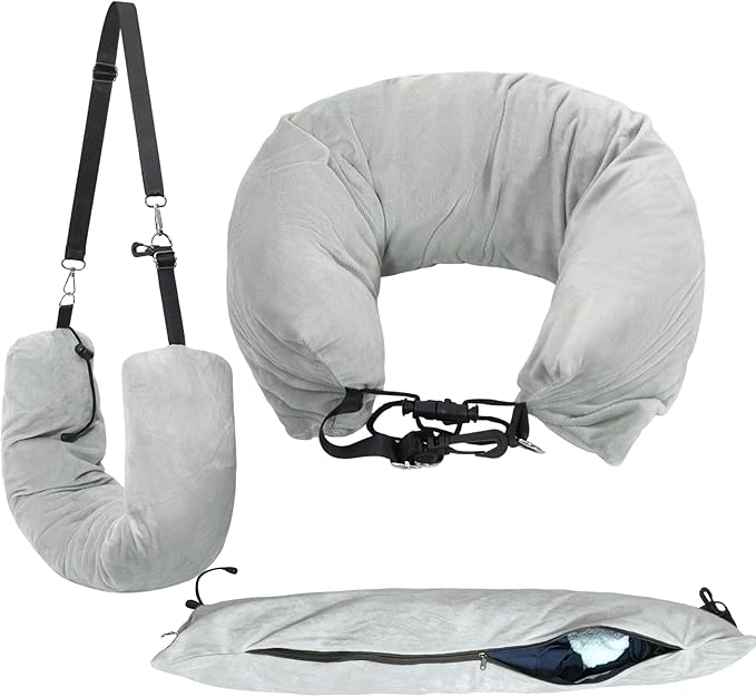 - 【Easy to Carry】: Our stuffable neck pillow for travel adopts a unique backpack design, allowing you to free your hands and carry it easily. Stay stylish and comfortable on the go!
