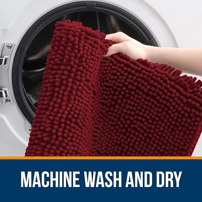OLANLY Bathroom Rugs 24x16, Extra Soft Absorbent Chenille Bath Rugs, Rubber Backing Quick Dry, Machine Washable Bath Mats for Bathroom Floor, Tub and Shower, Home Decor Accessories, Red
