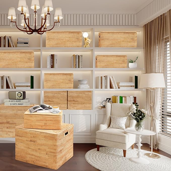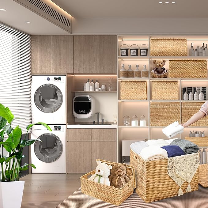 - 〖DURABLE & WIDELY USE〗the rattan is a thick and sturdy material which is suitale for home storage products. The special character can provide the best protector and storage space for your clothes, books, toys, camera Equipment and other messes. You can put them on the shelf, in your car or ues them outside activities. It is also a perfect choice for birthday gifts for relatives and friends and housewarming gifts.