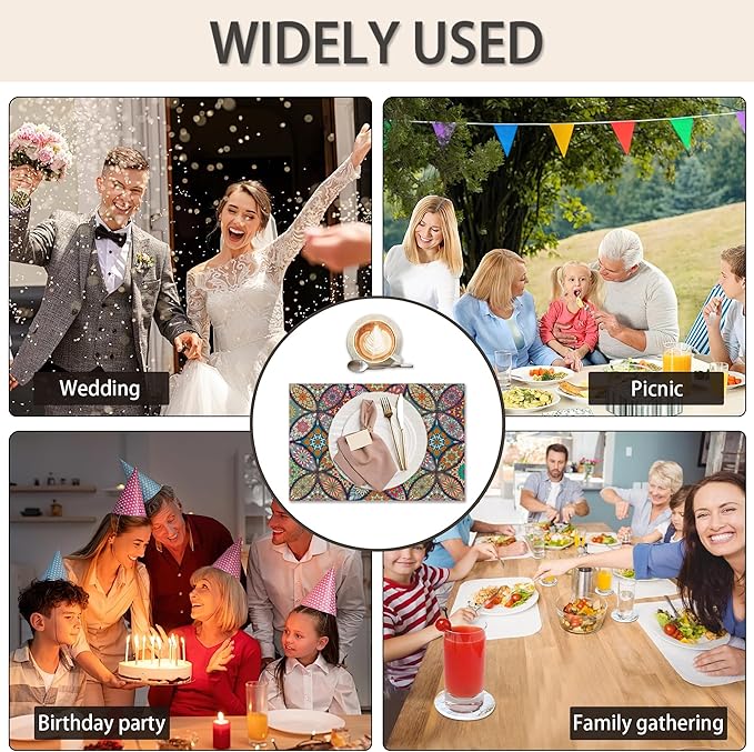 - Size:18x12 inches,including 6 pieces of Mandala Flower Vintage Boho Flower placemats,provides plenty of space for utensils while maintaining the stylish look of the table.