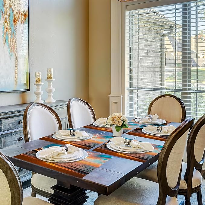 - Size:18x12 inches,including 6 pieces of Tropical Palm Sunset Trees Sea Beach placemats,provides plenty of space for utensils while maintaining the stylish look of the table.