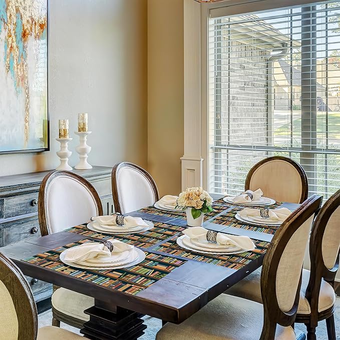 - Size:18x12 inches,including 6 pieces of Bookshelf Library Book placemats,provides plenty of space for utensils while maintaining the stylish look of the table.