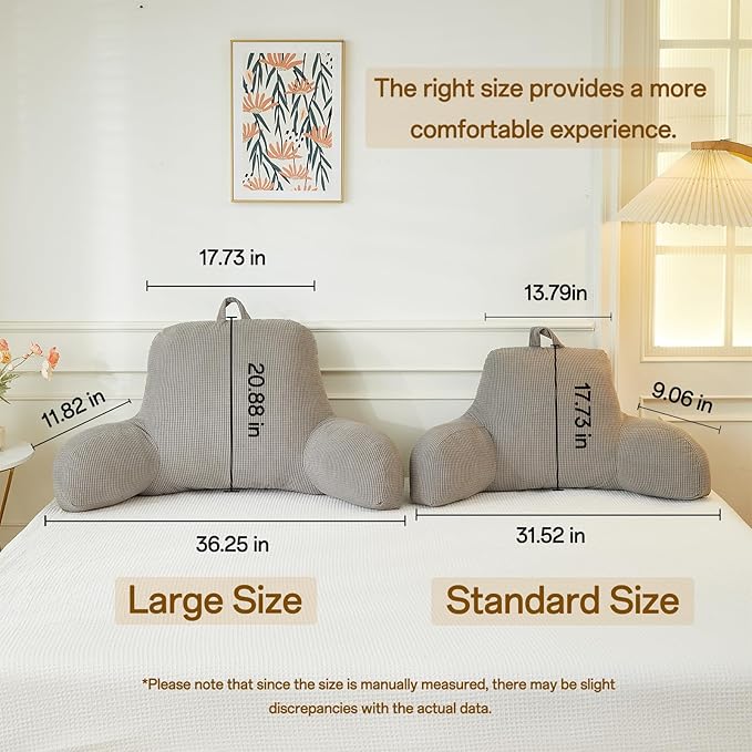 Back Pillow for Bed Sitting Up,Reading Pillow for Sitting in Bed Adult with Arm Pillow,Back Rest Pillow for Sitting in Bed with Pockets,While Gaming,Working,Watching,Standard-Gray