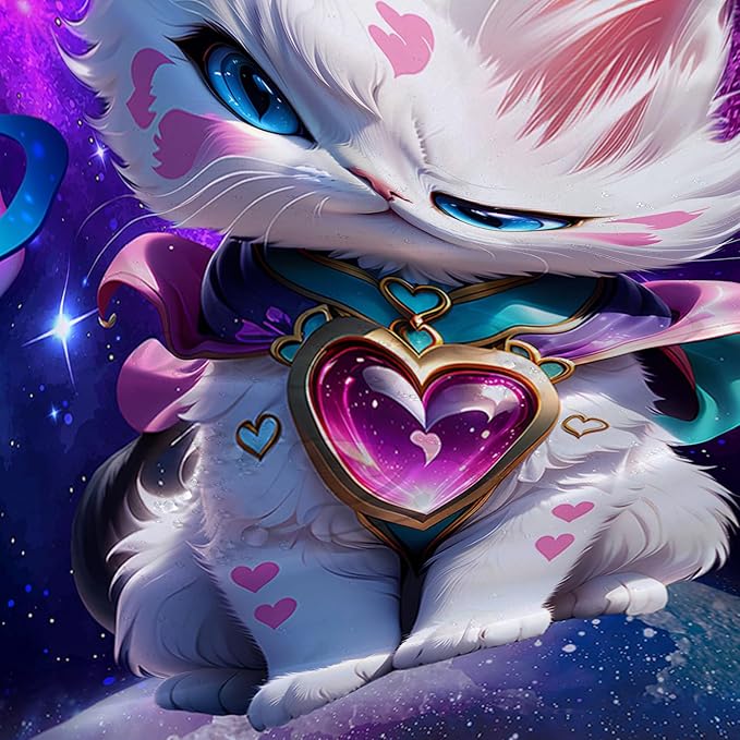 AILONEN Cartoon Cat Shower Curtain Set for Kids Boys Girls, Kawaii Love Kitten Shower Curtain for Bathroom,Galaxy Planet Washable Fabric Shower Curtain with Hooks,48" W*72" H