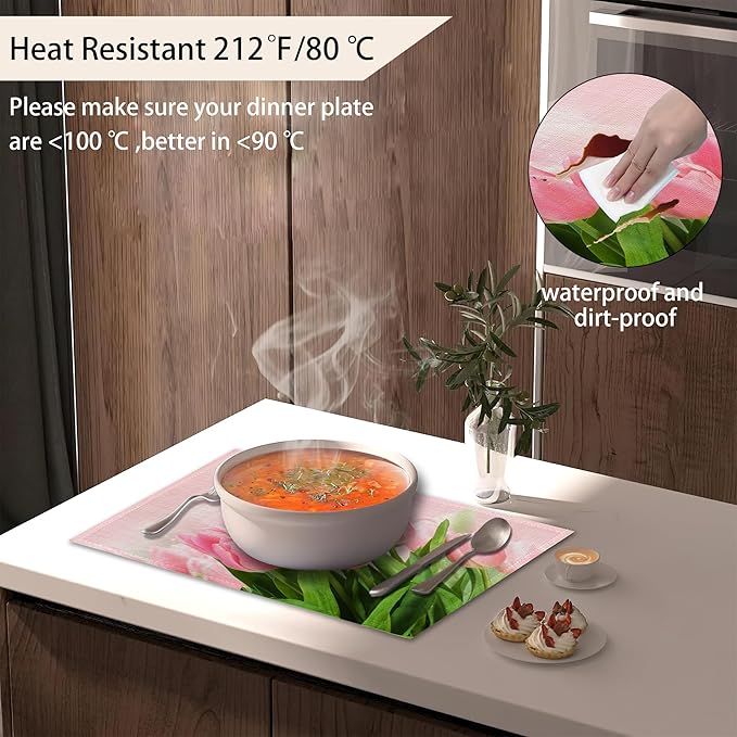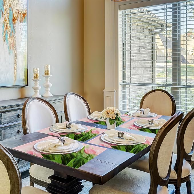 - Size:18x12 inches,including 6 pieces of Glitter Pink Tulip Flower placemats,provides plenty of space for utensils while maintaining the stylish look of the table.