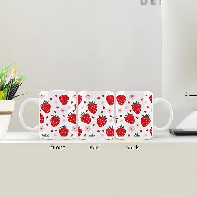 Strawberry Mug - Strawberry Coffee Mug, Cute Mugs, Aesthetic Mug, Strawberry Gifts, Strawberry Kitchen Home Decor, Strawberry Ceramic Coffee Mug 11 oz