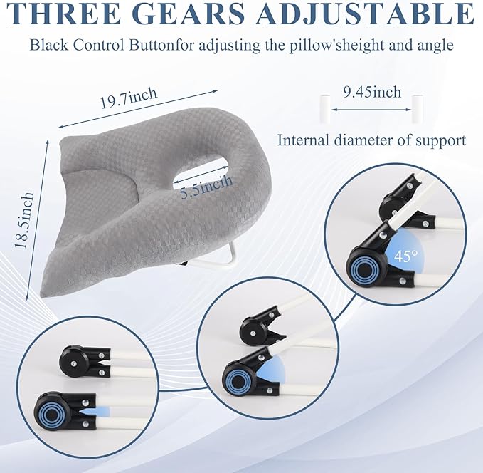 - Adjustable Height Feature: Featuring a height-adjustment button for personalized comfort, Enhances airflow for deep breathing, alleviating pressure on neck and shoulders. Find the perfect height and angle for a comfortable recovery experience. Soft, face-down design offers superior rest and support.