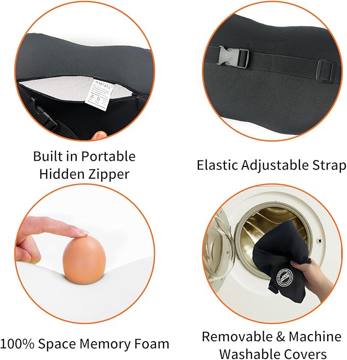 - ELASTIC ADJUSTABLE STRAPS: The high quality buckle prevents the car travel neck pillow from slipping or falling off the seat. The car travel pillow is easy to install and can be easily installed without any tools.