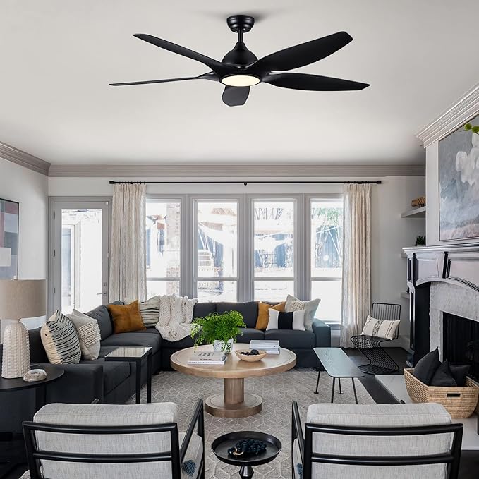 NicBex Ceiling Fan 60 Inch Modern Ceiling Fans with Integrated LED Light and Remote Control Double Finish Ceiling Fan with 5 ABS Blades for Living Room, Bedroom, Black