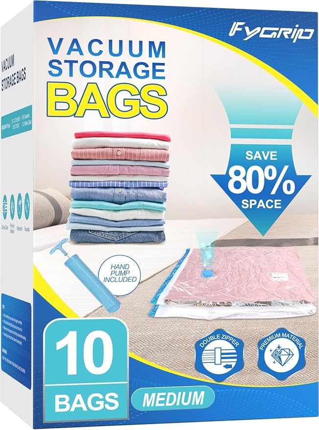 - 【80% Space Save】: Pack-Seal-Vacuum, with these 3 easy steps, Fygrip vacuum storage bags help you save 80% storage space. They are the game changer for storing your beddin, blankets, clothing and more.