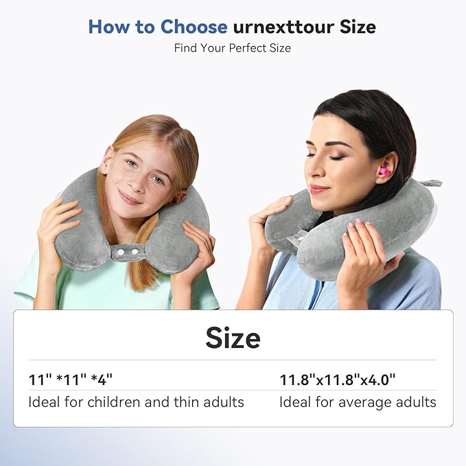 - Upgraded Memory Foam: The travel pillow is filled with superior quality upgraded memory foam. Our cloud-like memory foam filling features 3-second rebound technology and evenly distributes pressure at the point of contact with the pillow for ultimate head and neck relaxation and maximum comfort on the trip. Fit for children and thin adults while traveling.