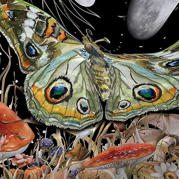 AILONEN Moth Shower Curtain,Sun and Moon Shower Curtain Set for Kids Girls Boys,Boho Natural Mushroom Plants Bath Curtain,Starry Night Bathroom Decor Shower Curtain with 12 Hooks,72" W*96" H