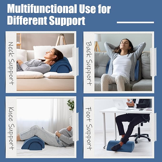 - Multi-position Support: The bolster is perfect for back sleepers that are seeking comfort during sleeping. The unique semi-roll design provides support to the legs, knees, back, ankles, neck, and hip joints, promoting proper spine and hip alignment. It aims to enhance comfort and may contribute to enhanced blood circulation, potentially reducing discomfort related to varicose veins.